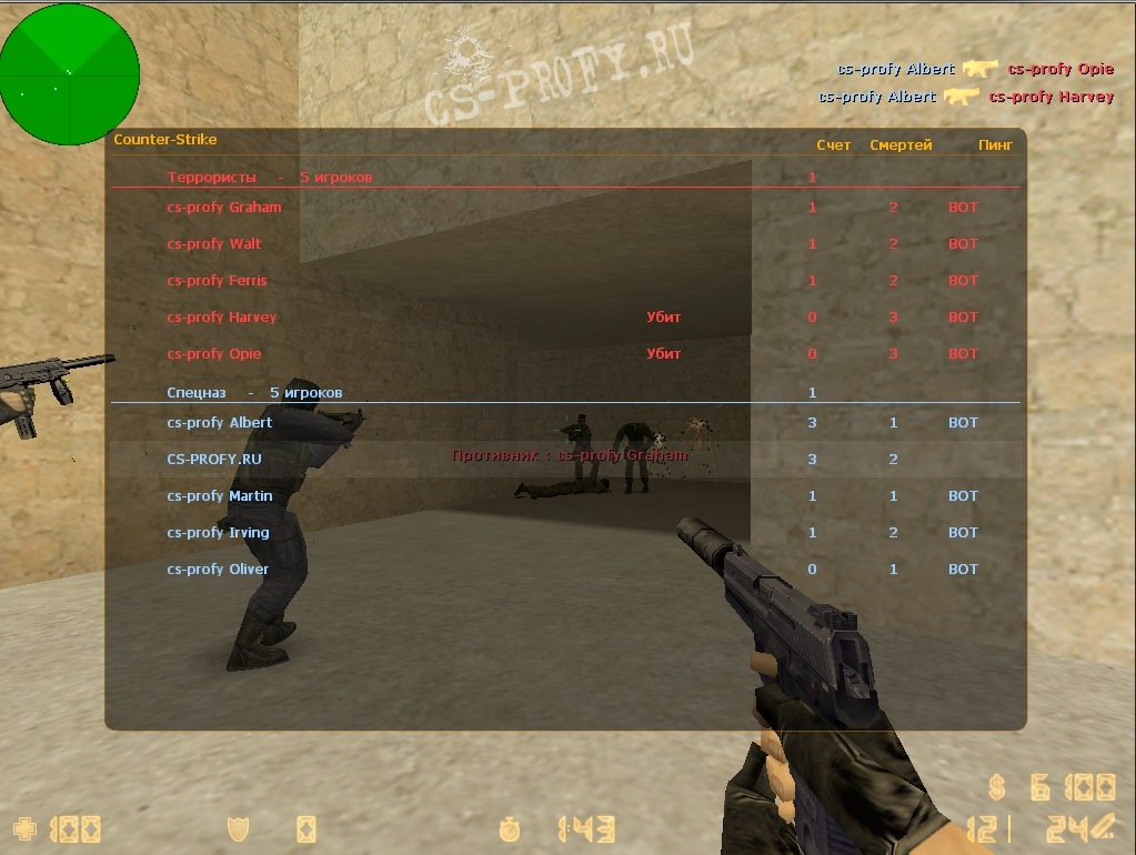 Запускаем Counter-Strike 1.6 и проверяем работоспособность ботов.